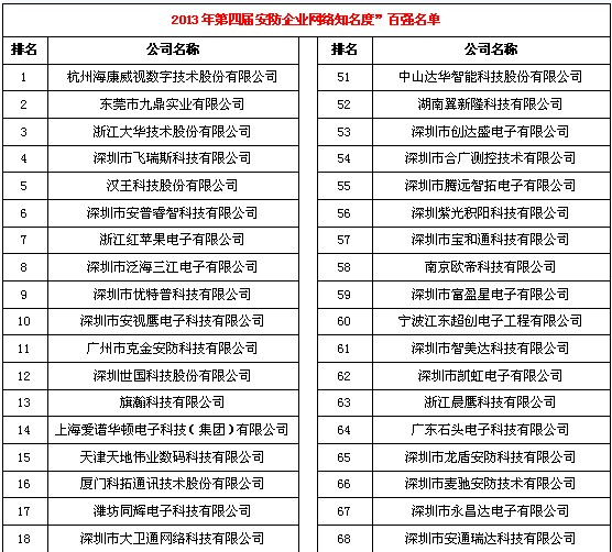 2013中国安防网“网络知名度”百强颁奖典礼隆重举行